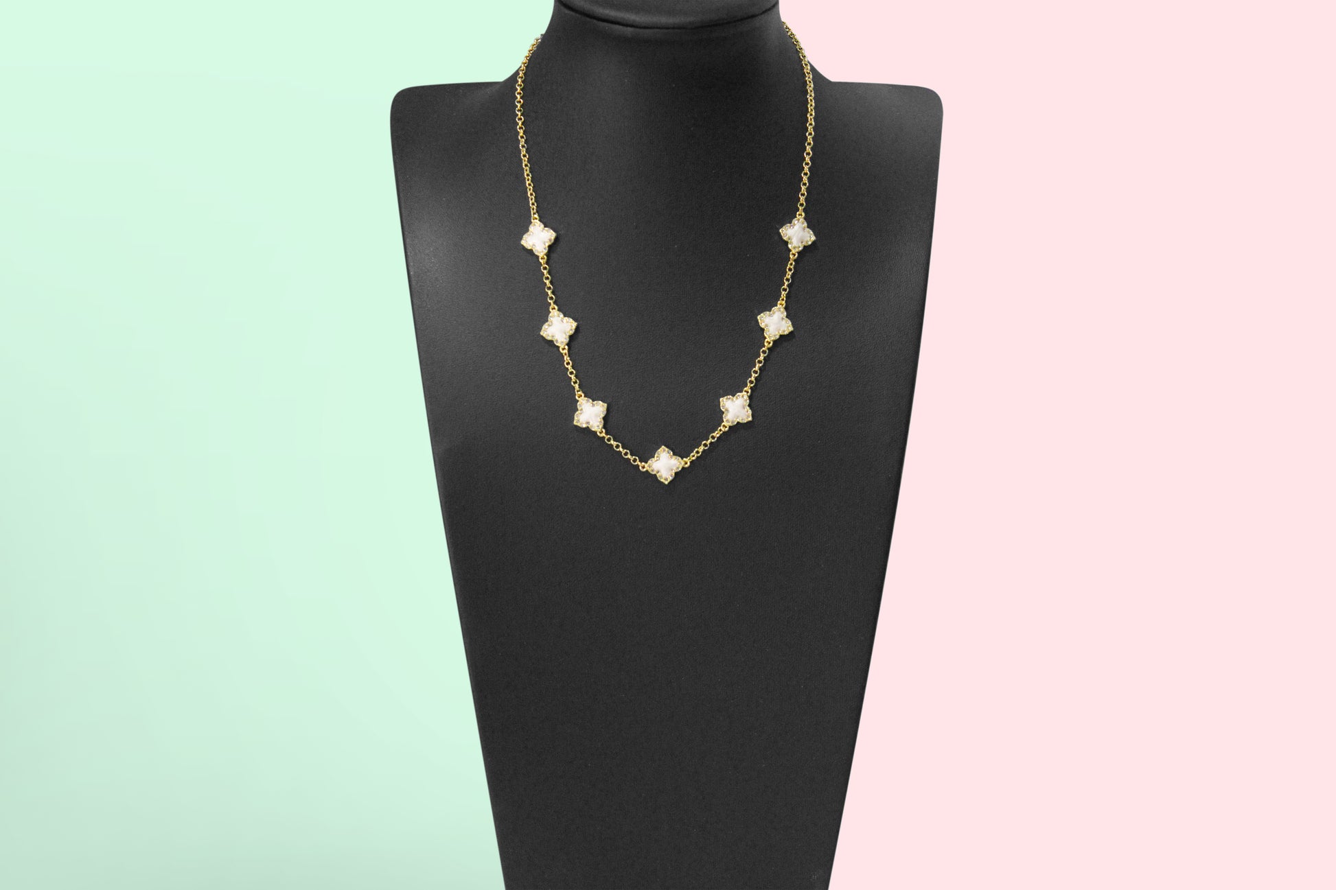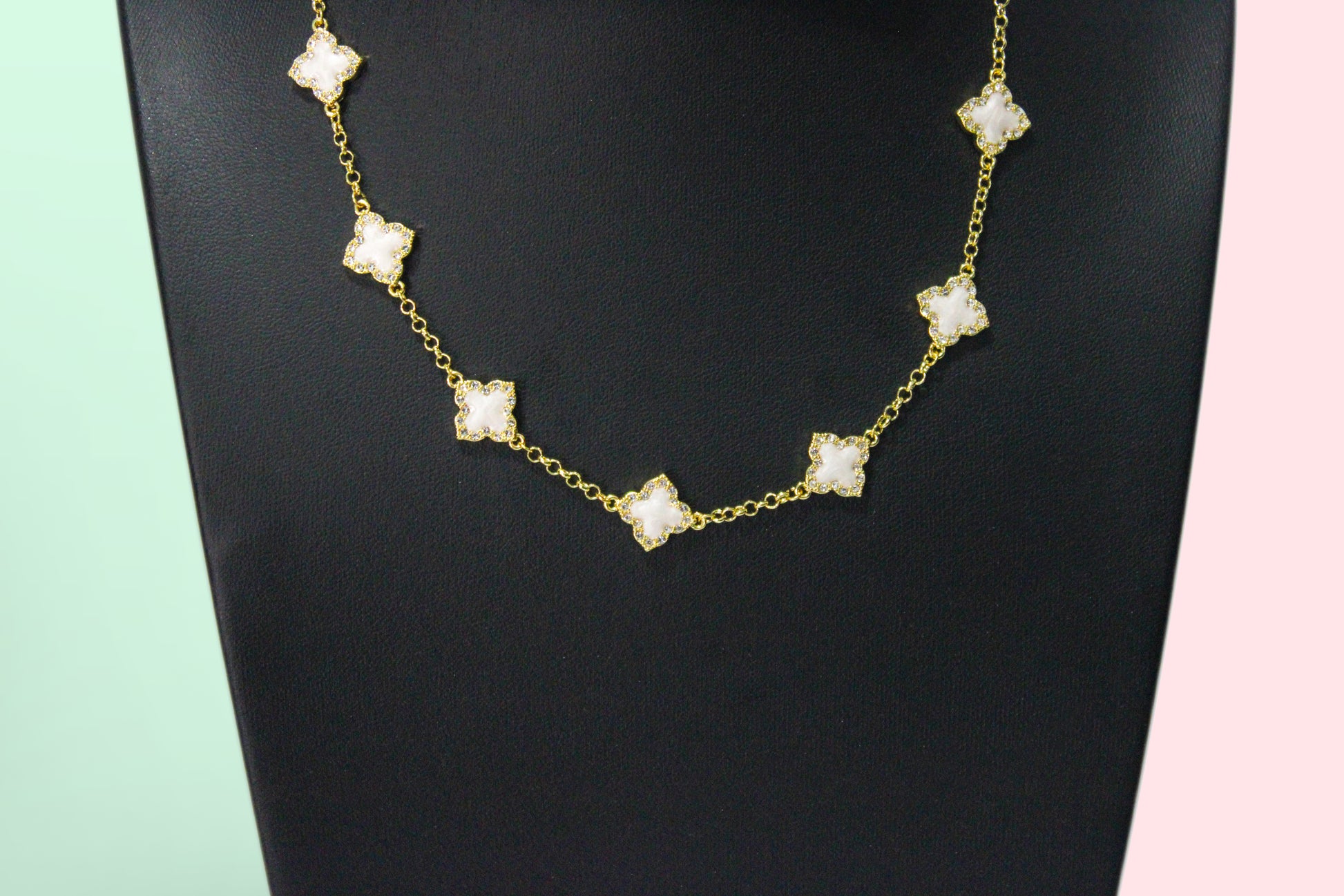 Gold White Clover Necklace